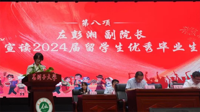 大会第五项 澳门金沙娱乐城官网 副院长孙玉梅老师宣读澳门金沙娱乐城官网 2024届留学生毕业生名录。