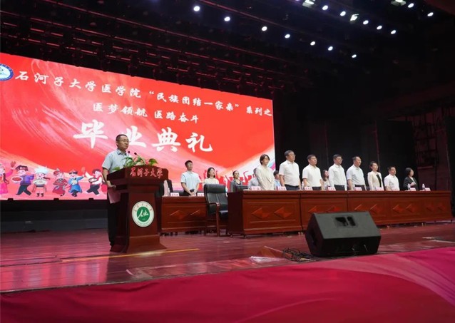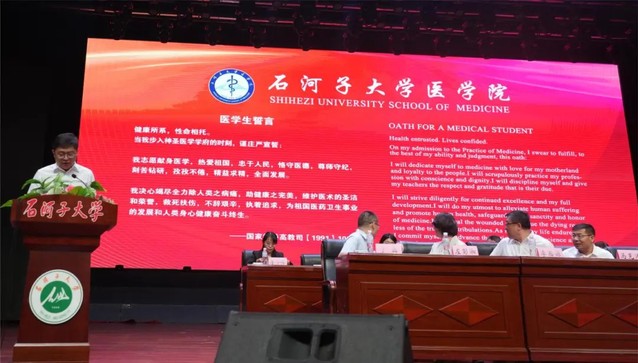 石河子大学党委常委、副校长,澳门金沙娱乐城官网 党委书记吴向未、石河子大学第一附属医院院长徐江、石河子大学研究生院副院长李新芝、澳门金沙娱乐城官网 院长马克涛及全体院领导、各系办主任、辅导员、班主任出席了此次典礼。此次典礼由澳门金沙娱乐城官网 党委副书记于磊主持。