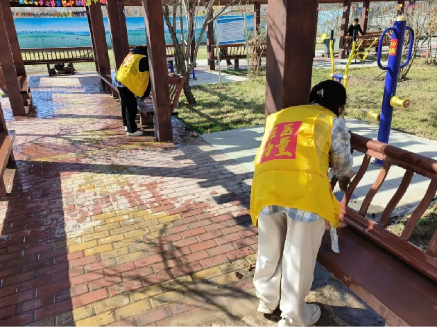 量完血压后,青年志愿者们打扫卫生,使得老人能有一个更舒适整洁的环境晒太阳,他们手上有活、心里有爱,给养老院送去了干净、整洁的居住环境。