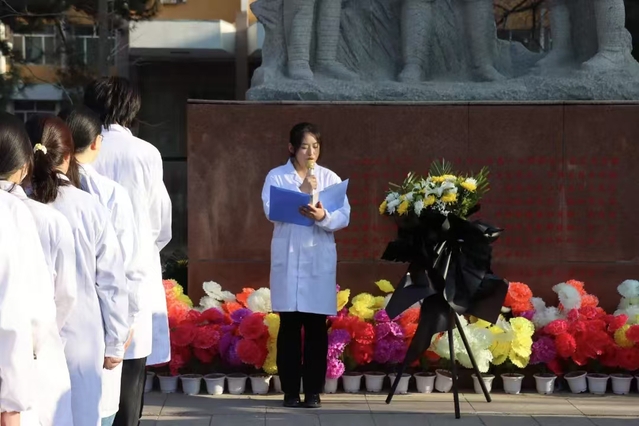 为深切缅怀革命先烈,赓续红色血脉,引导广大团员青年深入学习革命先辈的光辉事迹,厚植家国情怀,强化历史使命感,培育新时代爱国主义精神。4月4日上午,澳门金沙娱乐城官网 、药学院、护士学校于南区王震将军塑像前开展了“青春奋进,薪火相传”清明祭英烈主题活动,共计110名团学骨干参加此次活动。