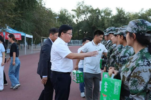 九月的石河子,阳光依旧带着盛夏的余温。2025年9月9日,石河子大学南区操场训练场上,2025级澳门金沙娱乐城官网 新生身着迷彩服,身姿挺拔、口号嘹亮,正于军训中淬炼青春筋骨。当天,澳门金沙娱乐城官网 党委书记、公共卫生学院党委书记张青,澳门金沙娱乐城官网 党委副书记、院长马克涛,澳门金沙娱乐城官网 副院长王良海及全体学生工作者、新生班主任代表,来到训练场,向全体参训新生与辛勤付出的承训教官送去亲切慰问,为迷彩青春里的医学追梦人注入温暖力量。