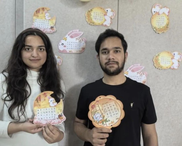 活动在“品月饼话中秋” 环节达到高潮。办公室的老师精心准备了印有石河子大学校徽以及校训的定制月饼,这些月饼都是五仁、莲蓉、豆沙、蛋黄等传统口味。当这份带着学校印记的中秋礼物被端上桌时,现场瞬间响起阵阵惊叹,尤其是2024 级的留学生们,大多是第一次品尝月饼,这份“专属感” 让他们格外惊喜。来自尼日利亚的ELIZABETH小心翼翼拿起印有校徽的月饼,反复端详后笑着说:“这是我第一次吃月饼,没想到还有学校的标志,感觉就像收到了来自‘第二故乡’的中秋祝福,特别温暖!”