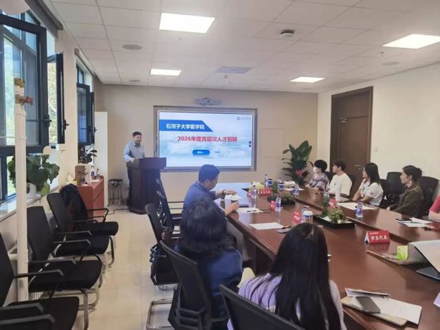 招聘会伊始,现场播放了石河子大学宣传片,系统展示了学校历史沿革、学科特色、发展成就及“新医科2.0”建设蓝图,引发热烈反响。随后,马克涛院长以“扎根边疆、追求卓越——共建西部医学教育高地”为题,从金沙娱乐城概况 、学科平台、科研实力、人才政策、职业发展、生活保障六个维度进行专题推介。重点解读了自治区“2+5”人才项目,以及石河子大学、八师石河子市各类博士引进优惠政策。