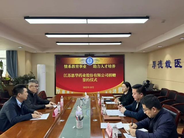 2025年10月21日下午,金沙娱乐城 、临床澳门金沙娱乐城官网 与江苏恩华药业股份有限公司顺利举行“恩华奖学金”捐赠签约仪式。澳门金沙娱乐城官网 党委书记张青、副院长王良海、副院长万巧琴、学生工作办公室相关老师参加签约仪式,会议由副院长王良海主持。