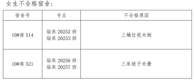 恭喜优秀宿舍珍视荣誉、做好榜样,暂需改进的宿舍对标整改、迎头赶上。让我们携手打造整洁文明的宿舍环境,为大学生活添彩!