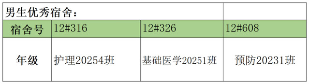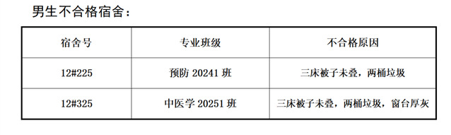 需改进的宿舍公示: