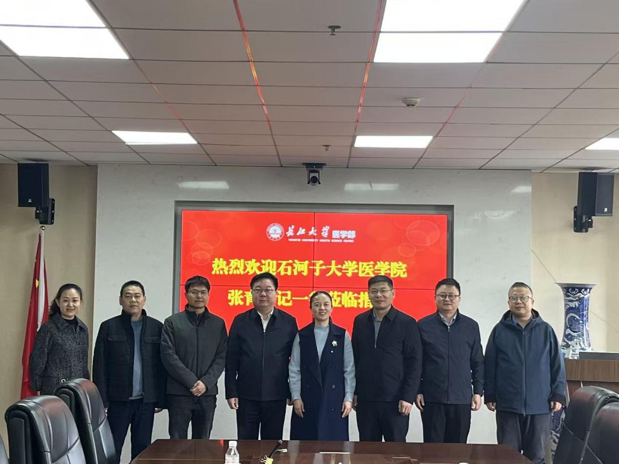 11月27日,调研团队赴长江大学医学部交流,长江大学医学部党委书记黄群俊等出席,双方围绕高层次人才申报、学科建设、师生合作等交换意见,探讨搭建人才联合培养平台、共同申报人才项目,为合作奠定基础。