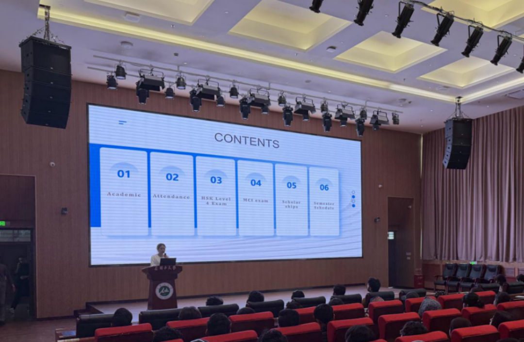 3月6日,澳门金沙娱乐城官网 本科留学生新学期全体大会在“一带一路”国际教育大厦礼堂隆重举行,澳门金沙娱乐城官网 全体本科留学生齐聚一堂,共启新学期新征程。本次大会旨在全面总结上学期留学生教育管理与学业发展成效,明确新学期学风建设、安全管理及服务保障工作重点,为留学生们的学习生活筑牢基础、指明方向。