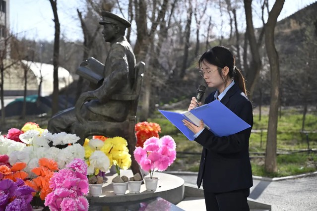 学生代表研究生第四党支部凡小阁结合自身学习与成长经历,分享了对英烈精神的理解与感悟,表示将以革命先烈为榜样,把英烈精神融入专业学习与日常实践中,坚定理想信念,练就过硬本领,以实际行动传承红色血脉。