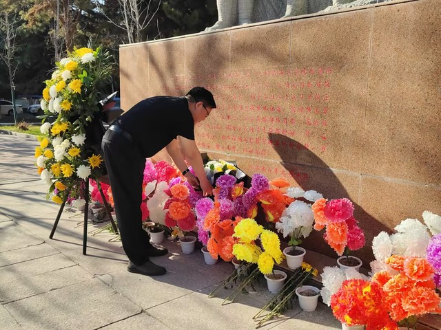 活动伊始,全体老师肃立默哀,低头追思,在静默中缅怀王震将军等军垦英烈的丰功伟绩,感悟如今幸福生活与教育事业发展的来之不易,寄托对先烈的深切哀思。默哀1分钟结束后,全体老师肃立行三鞠躬礼,全程保持安静肃穆,以最庄重的姿态表达对英烈的敬畏与缅怀。随后,澳门金沙娱乐城官网 党委书记张青同志稳步上前,向王震将军雕像敬献鲜花,寄托全体党员对英烈的深切敬意。