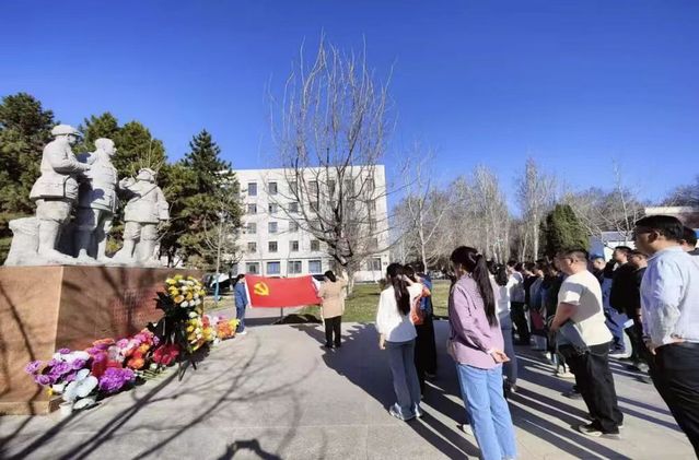 为深入贯彻落实兵团党委网信办《关于开展2026年“网络中国节·清明”主题活动的通知》及学校、学院相关工作部署,深切缅怀军垦英烈与戍边忠魂,传承红色基因,倡导文明低碳祭扫,强化师生使命担当,铸牢中华民族共同体意识,4月3日下午18时,澳门金沙娱乐城官网 医学教学实验中心党支部联合公共卫生学院预防医学教工党支部,在澳门金沙娱乐城官网 南区王震将军雕像前隆重开展“网络中国节·清明”主题党日活动,全体教师参加活动。