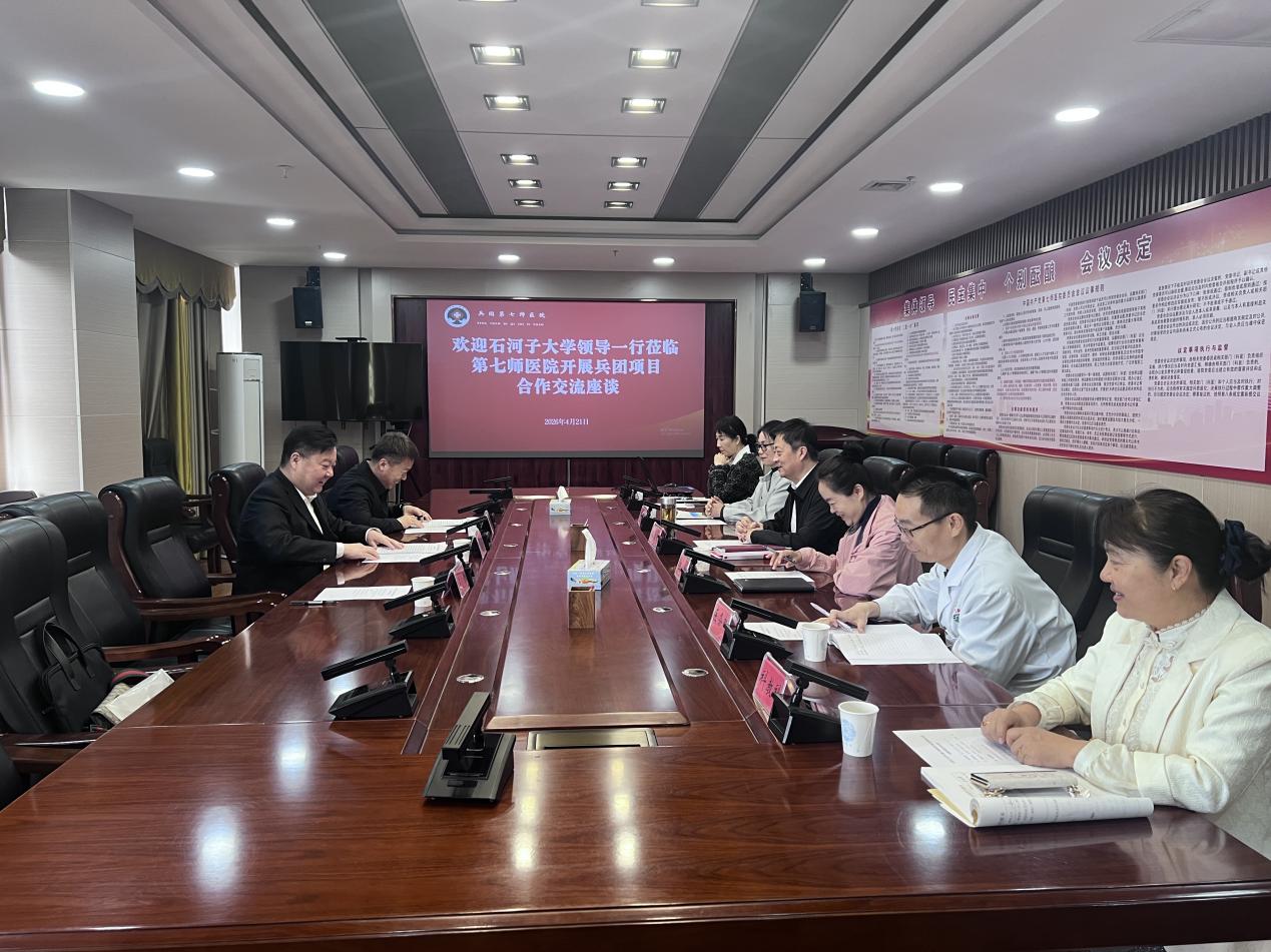 为深入推进兵团指导性计划项目落地实施,持续深化医教研协同发展,4 月 22 日,澳门金沙娱乐城官网 、公共卫生学院党委书记张青,澳门金沙娱乐城官网 副院长张君前往兵团第七师医院开展兵团项目合作交流座谈,精准对接科研需求,凝聚校院合作共识。