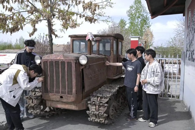 在馆长的引领下,师生们依次走进各个主题展厅,每一处展区都承载着厚重的历史,每一件展品都诉说着动人的故事。展厅内,锈迹斑斑的坎土曼、犁耙等农耕农具,见证着军垦先辈们白手起家、开荒造田的艰辛;老式链轨拖拉机、破旧的生产工具,展现着先辈们攻坚克难、开拓进取的奋斗姿态;布满补丁的衣物被褥、简易的生活用品、老旧的马灯与缝纫机,还原了军垦人勤俭节约、艰苦奋斗的生活场景;泛黄的革命文献、珍贵的老照片、手写的工作笔记,更是记录着兵团人听党指挥、无私奉献、扎根边疆的坚定信念。