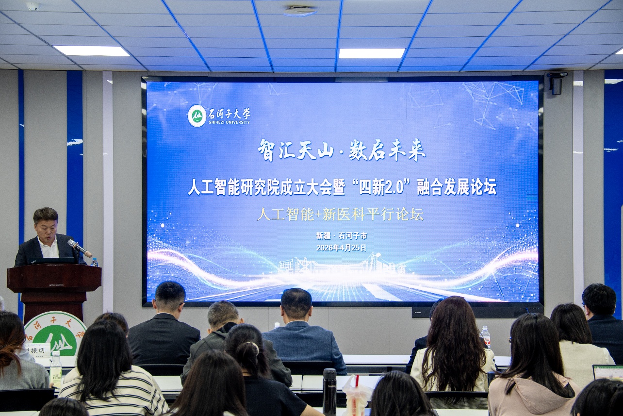 2026 年 4 月 25 日,石河子大学 “智汇天山・数启未来” 人工智能研究院成立大会暨 “四新 2.0” 融合发展论坛人工智能 + 新医科平行论坛暨金沙娱乐城 2026年度第一期“医+X”创新沙龙,在澳门金沙娱乐城官网 杏3楼-324报告厅成功举办。本次论坛聚焦人工智能技术与新医科建设的深度融合,汇聚国内顶尖医学与人工智能交叉领域专家学者,共同探索数智赋能医学教育、临床科研与健康产业高质量发展的创新路径,为兵团乃至新疆地区智慧医疗建设注入新动能。